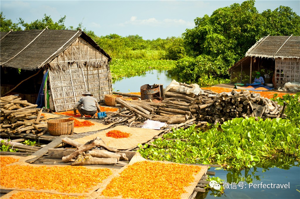 一早出发,乘着天气凉爽,我们骑车或搭乘TUK-TUK车,进入乡间去看看传统的陶瓷工艺和棕榈糖的制作过程。想象骑行穿过层层稻浪,看着片片棕榈林在眼前略过。游船穿过光滑如镜的河面,停靠在巨莲旁边,我们可以搭乘牛车漫步在洞里萨河畔,路边林立着很多的高脚木屋。在炎热干燥的季节里,当地的人们便在这些室外的会客厅里避暑乘凉。